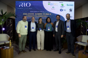 The panel ‘The Forest Code and Brazil’s climate targets‘ was moderated by Marcelo Elvira (Forest Code Observatory – OCF), featuring Beto Mesquita (Conservation International – CI), Roberta del Giudice (BVRio), and Ana Carolina Crisostomo (WWF-Brazil).